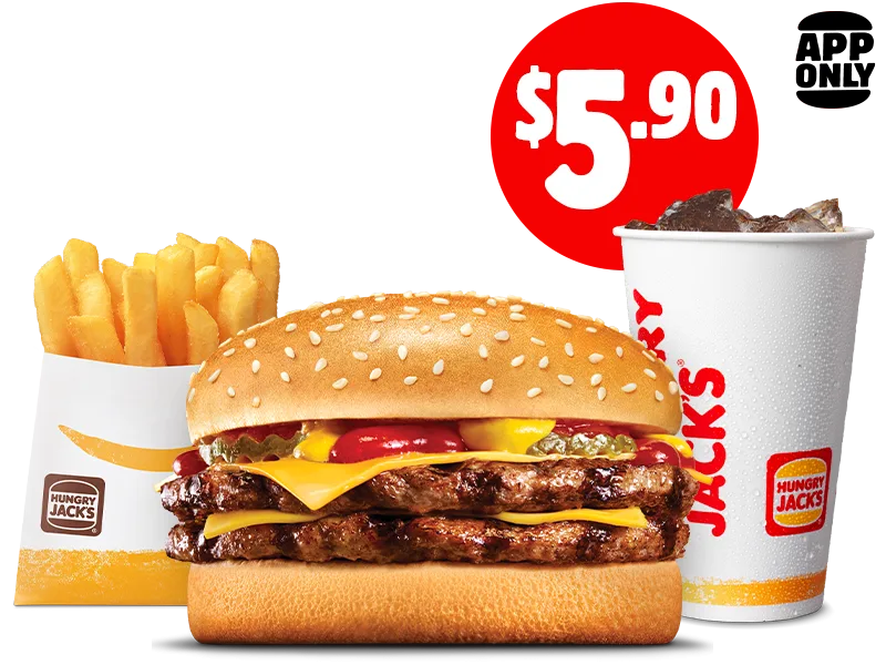 Hungry Jack’s reigns supreme when it comes to the Chicken Royale Small Value Meal. This meal features a crispy Chicken Royale burger, which is a succulent chicken patty topped with fresh lettuce, tomato, and a creamy mayonnaise sauce, all nestled in a soft bun. Accompanied by a side of golden, crispy fries and a soft drink, this meal is perfect for a quick and satisfying lunch or dinner. To complete the experience, the meal includes an extra side of three perfectly crispy nuggets, which are ideal for those who love a bit of extra crunch and flavor. Hungry Jack’s commitment to using high-quality ingredients and delivering consistent taste makes this value meal a top choice for fast-food enthusiasts.