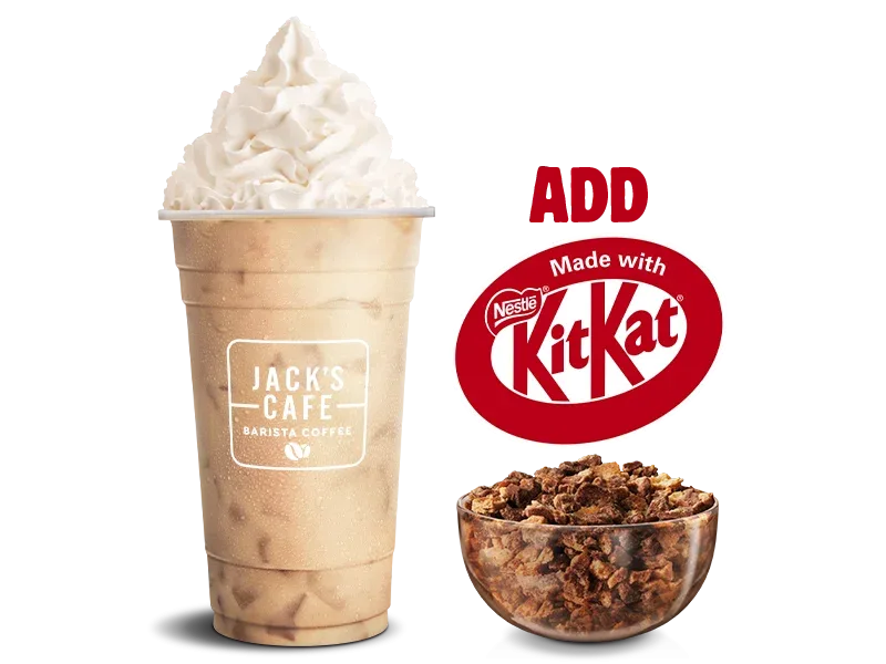 Enhance your experience by adding KitKat® crumbs and enjoy every sip of our Barista Iced Drinks Made with KitKat®.