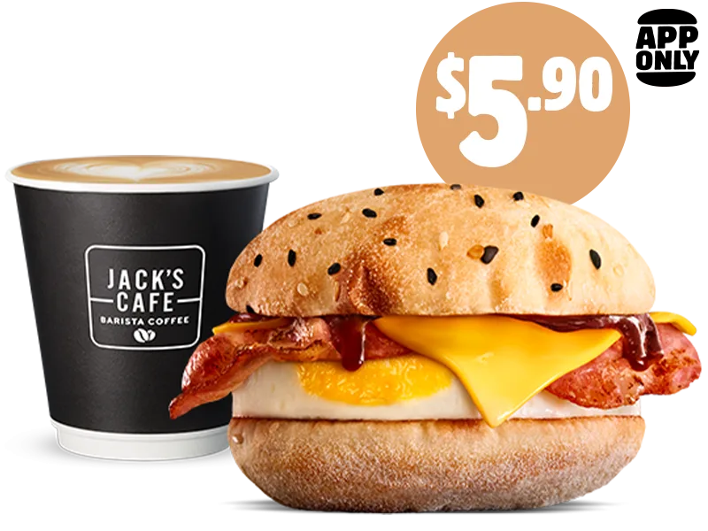 The Hungry Jack’s Turkish Breakky Roll features a warm, soft Turkish roll packed with succulent grilled chicken, crispy bacon, fresh lettuce, juicy tomato, and a creamy egg patty, all drizzled with a flavorful BBQ sauce. Accompanying this hearty roll are two golden, crispy hash browns, perfectly seasoned and fried to a delightful crunch. This breakfast combination delivers a satisfying blend of textures and tastes, making for a delicious start to your day.
